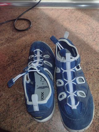 Sandalias Geox para niño, talla 39, en azul y gris. Son usadas pero están en buen estado. - Ideales para verano. - Cómodas y resistentes. - Suela con buen agarre.