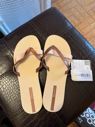 Chanclas de la marca Ipanema con un diseño elegante y cómodo. - Tira trenzada en tonos beige y bronce. - Suela con relieve. - Detalle de logo en la plantilla. - sin estrenar con etiqueta.
