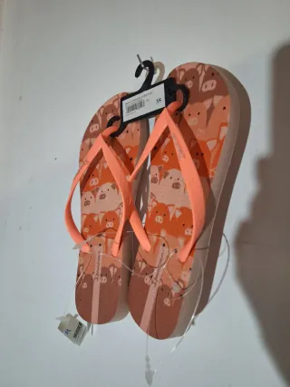 Chanclas Ipanema con un divertido estampado de cerditos. - Talla 35. - Diseño en tonos naranja y rosa. - Tiras de color coral.