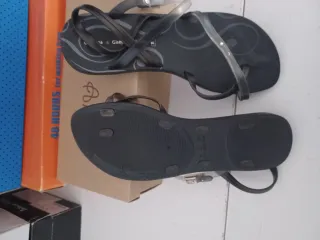 Lote de 25 sandalias variadas. Para reventa Cuatro colores disponibles talla desde la 36 a la 40 por cierre de tienda, estilos Ipanema - Diseños con estampado de leopardo. - Sandalias tipo pala en color beige. - Sandalias negras con tiras y detalle de triángulo. - Algunas sandalias incluyen etiqueta con referencia A-15.