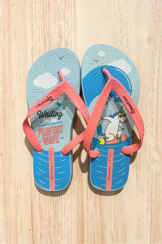 Divertidas chanclas Ipanema con diseño de Mr Wonderful. - Estampado de unicornio surfeando. - Mensaje Waiting for the perfect wave. - Tiras en color rosa. - Suela con diseño de olas. - Puestas en muy pocas ocasiones.