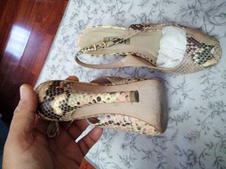 Sandalias de tacon dedo al aire, efecto al tacto piel de serpiente