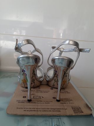 sandalias plateadas EDS SPACE N-38 buen estado 7-10 20€, tacones de fiesta by Mary Paz N-38 buen estado 10-14 20€ según fotos