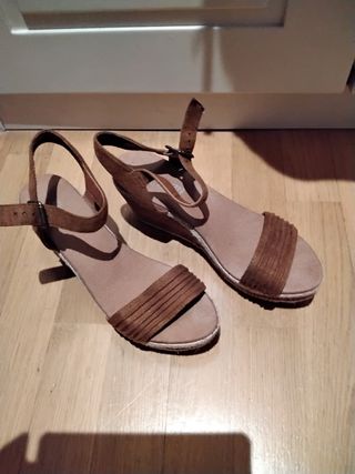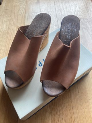 Sandalias marrones de cuña Mary Paz 38. Muy cómodas con poco uso, de fieltro