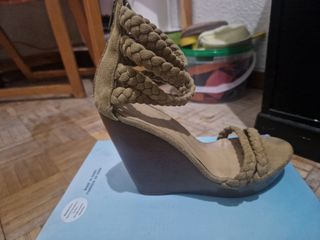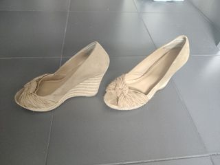 Preciosas sandalias de cuña de la marca Mary Paz, talla 41, en color beige. Una sola puesta , s on nuevas y están impecables, las vebdo porque me quedan grandes y no tengo ticket. Me costaron 39 euros. Se pueden recoger en Pozuelo, Moncloa o Principe Pio - Material de ante. - Diseño de cuña cómoda. - Hebilla de cierre en el tobillo. - Perfectas para primavera/verano.