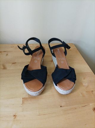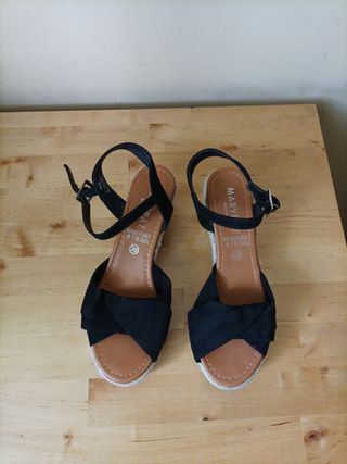Sandalia con tacon corcho de 9,5 cm de alto. Talla 38. Estan en perfectas condiciones. Tienen su caja de compra de Mary Paz