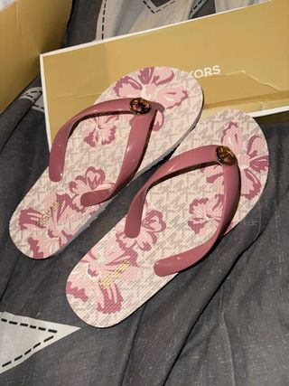 Chanclas de la marca Michael Kors con un bonito estampado floral. - Diseño con flores en tonos rosa y beige. - Tiras en color rosa. - Detalle de logo MK dorado en las tiras.