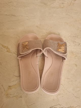 Elegantes sandalias Michael Kors en color dorado. Perfectas para añadir un toque de brillo a tu look. - Diseño con tiras cruzadas. - Cierre de hebilla ajustable. - Detalle de tira en el dedo del pie.