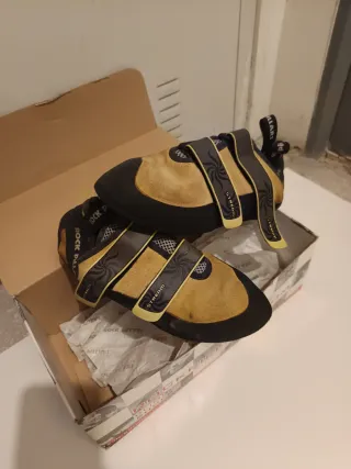 Escarpines de escalada Rock Pillar. - Cierre con velcro. - Diseño en ante y negro. - Suela de goma.