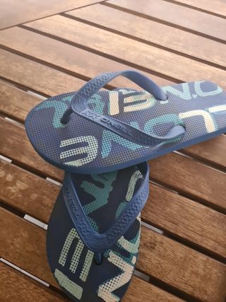 Vendo un par de chanclas O'Neill. Son azules y parecen estar en buen estado, aunque presentan señales normales de uso. - Ideales para verano. - Cómodas y ligeras.