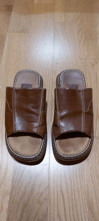 Zapatos de caballero marrones tipo sandalia y con poco uso.