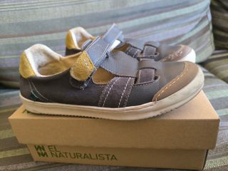 Sandalias El Naturalista para niño, en tonos grises y marrón/ verde. Ideales para los días de buen tiempo. - Son de piel. - Tienen cierre de velcro. - Están en buen estado.
