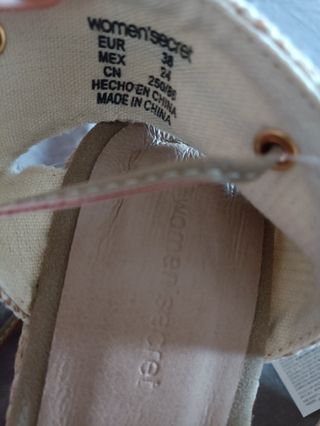 Sandalias de mujer con cuña de color marrón verdoso, de la marca Women'secret, talla 38. Están nuevas sin estrenar, iban a ser un regalo y no las he podido cambiar ni devolver porque he perdido el ticket.