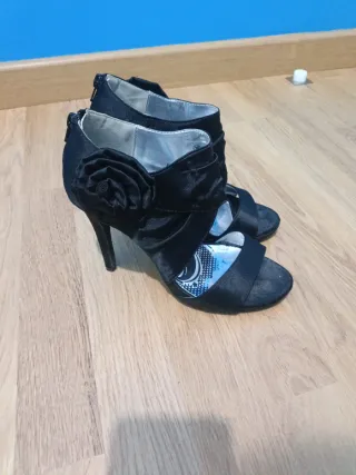 Preciosos tacones de la marca MARYPAZ. Son de color negro y tienen un diseño elegante. Puestos una vez. - Material: ante. - Tacón fino. - Cierre de hebilla en el tobillo. - Se venden en su caja original.