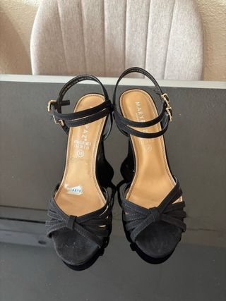 Elegantes sandalias aterciopeladas de color negro, puestas solo en una ocasión. Marca Maripaz. Talla 38.