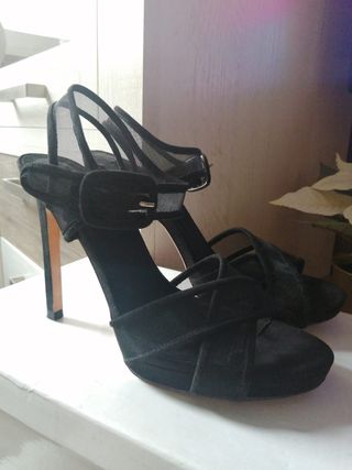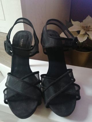 Elegantes tacones de la colección Basic de Zara. - Diseño de tiras con detalle de malla. - Cierre de hebilla. - Tacón alto.