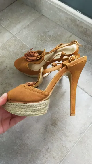 Sandalia fiesta de tacón atada al tobillo, talla 36 puestas un rato.