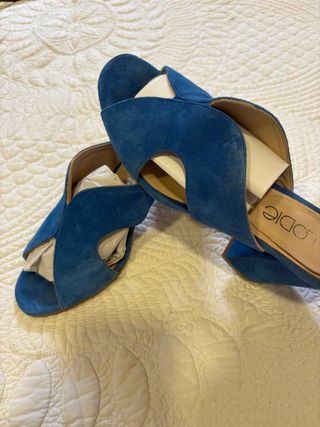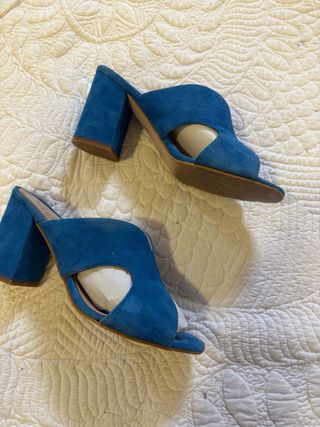 Sandalias italianas de tacón. Talla 36. - Son de color azul claro. - El tacón es cómodo y de altura media.