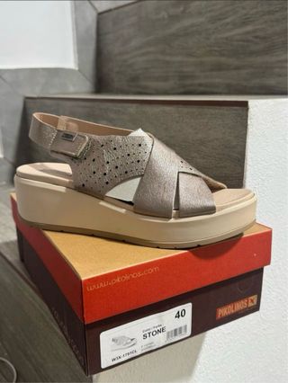 Sandalias originales Pikolinos modelo W3X-1791CL color Stone. Nuevas a estrenar • Con caja original Súper cómodas (cuña ligera) ** Piel metalizada muy combinable Talla 40 En tienda cuestan 99€. Las vendo por 55 Precio ya ajustado, no negociable. Entrega en mano o envío por Wallapop.