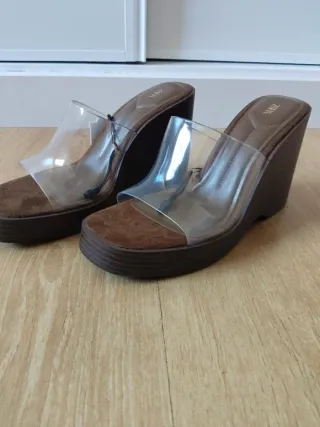 Sandalias cuña Zara transparentes marrón talla 41
