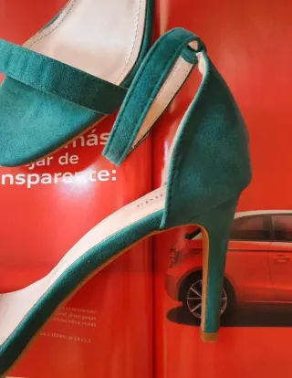 sandalias de tacón de Zara en rojo coral en talla 39 . Abrochadas a tobillo mediante hebilla. Un solo uso