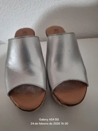 Sandalia de cuña color plateado (muy comodas) talla 37