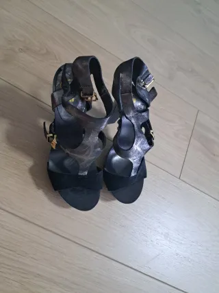 Sandalias Lodi de fiesta, talla 37. Son de color negro y plata, con tacón. - Diseño elegante y sofisticado. - Material de alta calidad. - Perfectas para ocasiones especiales.