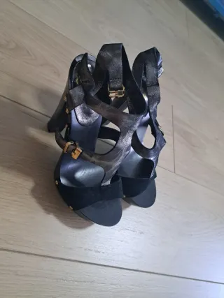 sandalia tacón brillante plata talla 39, nuevos sin usar con caja y todo.De Dana Womem.cuña super comodos