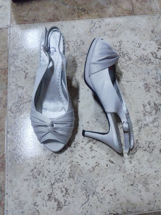 Sandalias de tacón. De fiesta. Color plata. T-39.