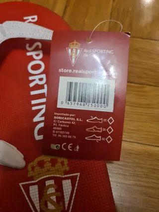 Chanclas del Real Sporting con el escudo del club. - Diseño en color rojo y blanco. - Talla 37/38.