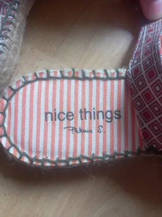 Sandalias de la marca Nice Things, talla 40, sin estrenar. - Diseño con estampado geométrico en tonos rojos, naranjas y beiges. - Cinta en el talón con parte elàstica. - Suela de esparto con un poco d cojin para mas comoditat. -IMPORTANTE es una talla grande.