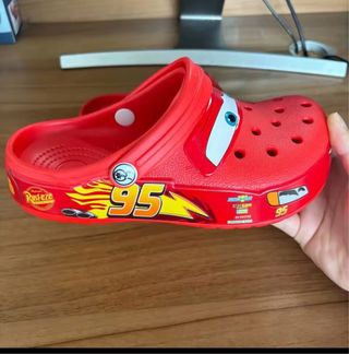 Zuecos infantiles inspirados en Rayo McQueen de Cars. - Diseño llamativo en color rojo. - Detalle de ojos y boca del personaje en la parte delantera. - Tiras traseras para un ajuste seguro.