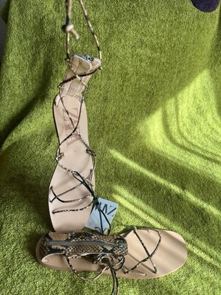 Sandalia de piel tipo romana atada a la pierna. Sin estrenar. Talla 36