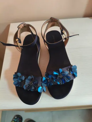 Sandalias azules con flores