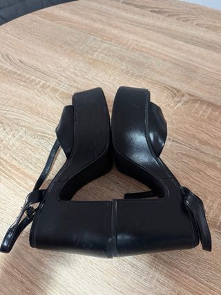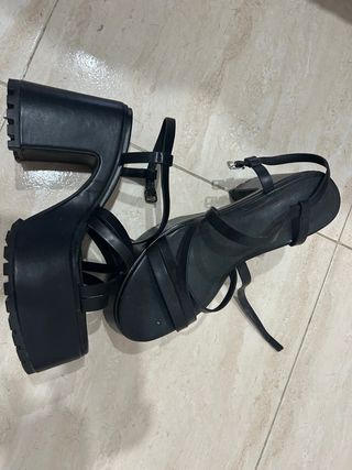 Sandalias de tacón con plataforma de la marca Stradivarius. - Diseño de tiras finas. - Tacón cuadrado y robusto. - Plataforma delantera. - Cierre de hebilla. nueva a estrenar