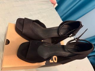 Sandalias de tacón alto con plataforma. - Diseño de tiras al tobillo. - Cierre con hebilla. - Material de ante. Usados sólo una vez para una sesión de fotos Mira más cosas en mi perfil, tienes descuentos a partir de 2 artículos