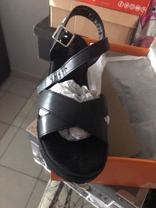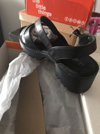 Sandalias con plataforma de color negro. - Cuerda atada al tobillo - Muy comodas