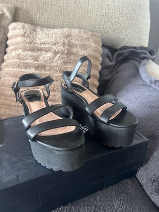 Sandalias Stradivarius, Plataforma Negras Talla 38