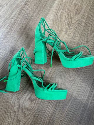 sandalias plataforma y cintas de stradivarius usadas una vez talla 37 ceremonia, zapato, sandalia, tacon, plataforma, verano