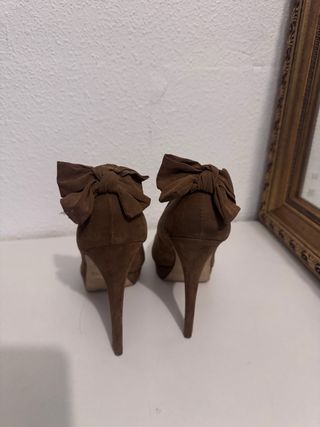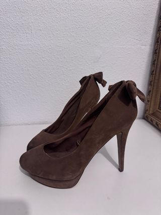 Preciosos tacones de plataforma de la marca Stradivarius. Son de color marrón y tienen un diseño elegante y sofisticado. -Altura del tacón: alta -En buen estado.