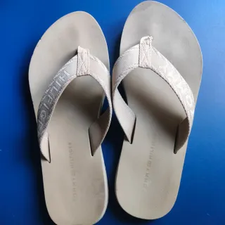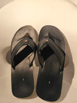 Chanclas de la marca Tommy Hilfiger para hombre. - Estampado de la marca en la plantilla. Usadas y con signos de desgaste en la suela pero solo allí