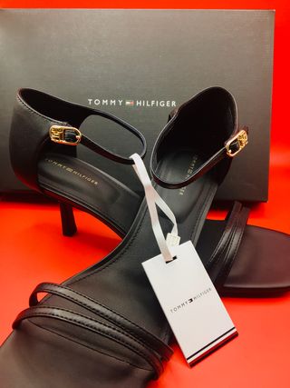 ENVIOS EN 24 H!!! ECHA UNA OJEADA AL RESTO DE ARTICULOS DE MI ARMARIO PARA DESCUBRIR OTROS TESOROS!!!! Prepárate para eventos especiales calzando estas elegantes sandalias de tiras con tacon kitten fabricadas en 100% cuero, con punta cuadrada moderna y una placa con el monograma Tommy Hilfiger. Detalles • Parte superior de cuero • Forro de cuero y plantilla acolchada • Suela de goma y poliuretano • Correa de tobillo • Tacón de gatito/kitten heel • Placa de monograma TH en la hebilla • Marca Tommy Hilfiger • Punta cuadrada y abierta • Altura del tacón 5/6 cm Talla 42.Nuevas con etiquetas. Ante cualquier duda consúltame,gracias!!!