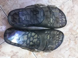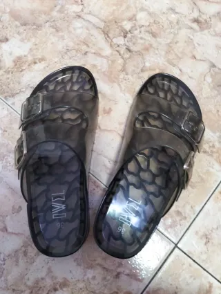 Sandalias transparentes de goma dura - Tiras ajustables con hebilla. - Suela con estampado. - Talla 36.
