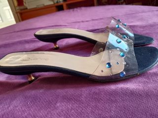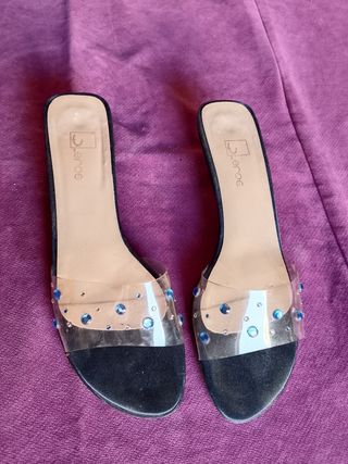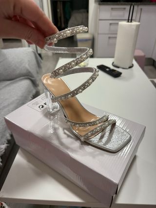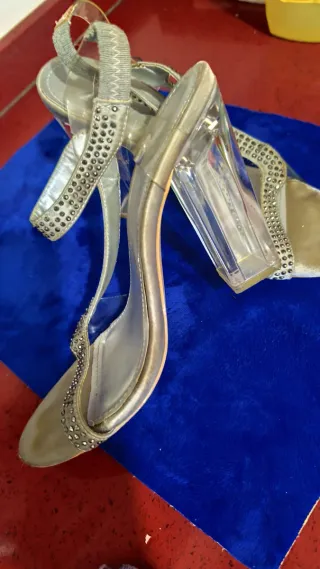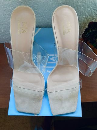 Sandalias de tacón bajo con tiras transparentes. - Diseño elegante y moderno. - Tacón bajo para mayor comodidad. -Utilizado 3 veces.