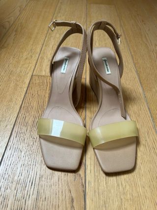 Elegantes tacones de Zara con tiras transparentes. - Diseño moderno y sofisticado. - Tira delantera transparente. - Tacón fino. - Altura tacón 10 cm. Un solo uso.
