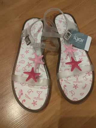 Sandalias de la marca Igor con un divertido estampado marino. - Diseño transparente con detalles en rosa. - Adornadas con estrellas de mar. - Cierre de hebilla ajustable.