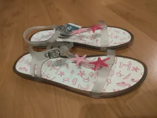 Sandalias romanas elegantes con un diseño único. - Adorno de pedrería. - Tira transparente. - Tacón cuadrado dorado. Me lo he comprado para estas fiestas y me queda grande lo vendo por 20€ está sin estrenar