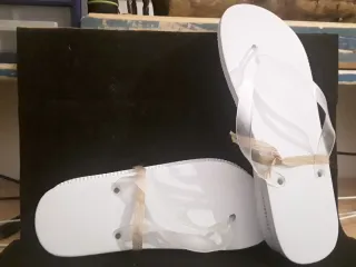 Chanclas blancas con tiras transparentes Tallas 41 y 42 Precio por ambas