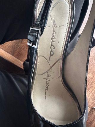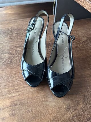 Sandalias negras de charol de Jessica Simpson usadas una vez. preciosas con tacon transparente. muy cómodas.