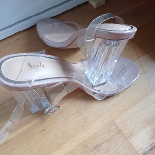 Sin estrenar, n 39, piel, el tacón es transparente, se atan al tobillo